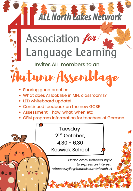 ALL North Lakes Network is delighted to welcome you to its second twilight meeting, starting at 4.30pm and finishing at 6.30pm on Tuesday 21st October. There will be refreshments for when you arrive.